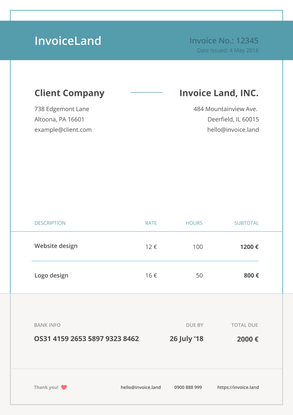 Minimalistic Business Invoice Template. Perfect solution for service companies, consultants, and freelancers. Editable in multiple formats.